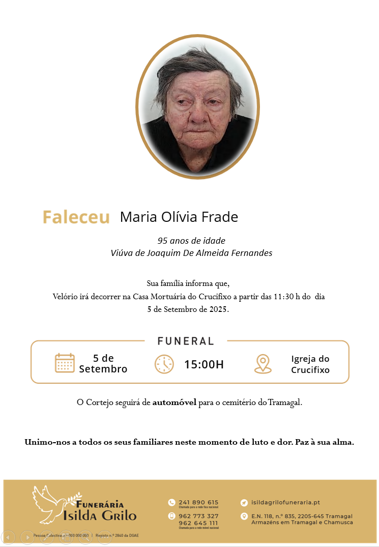 Velório: Casa Mortuária de Crucifixo, a partir das 11:30h do dia 05-09-2025
